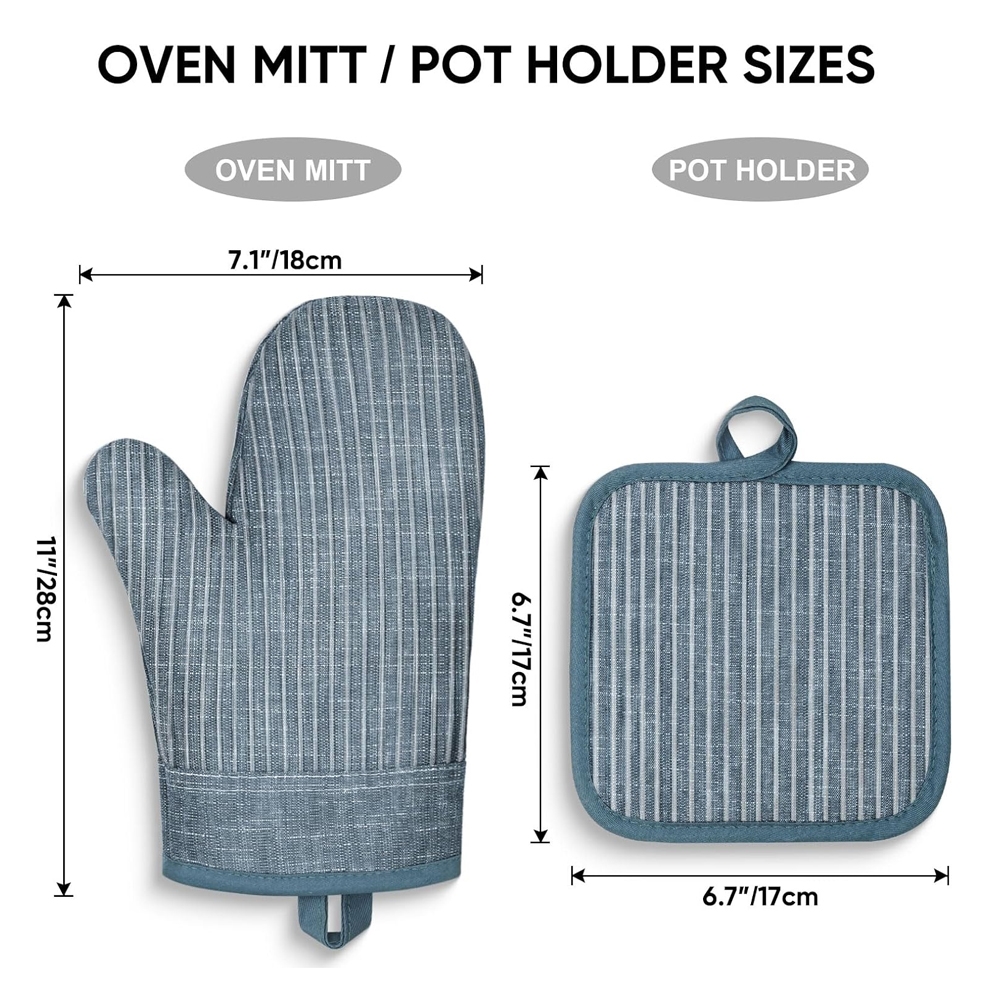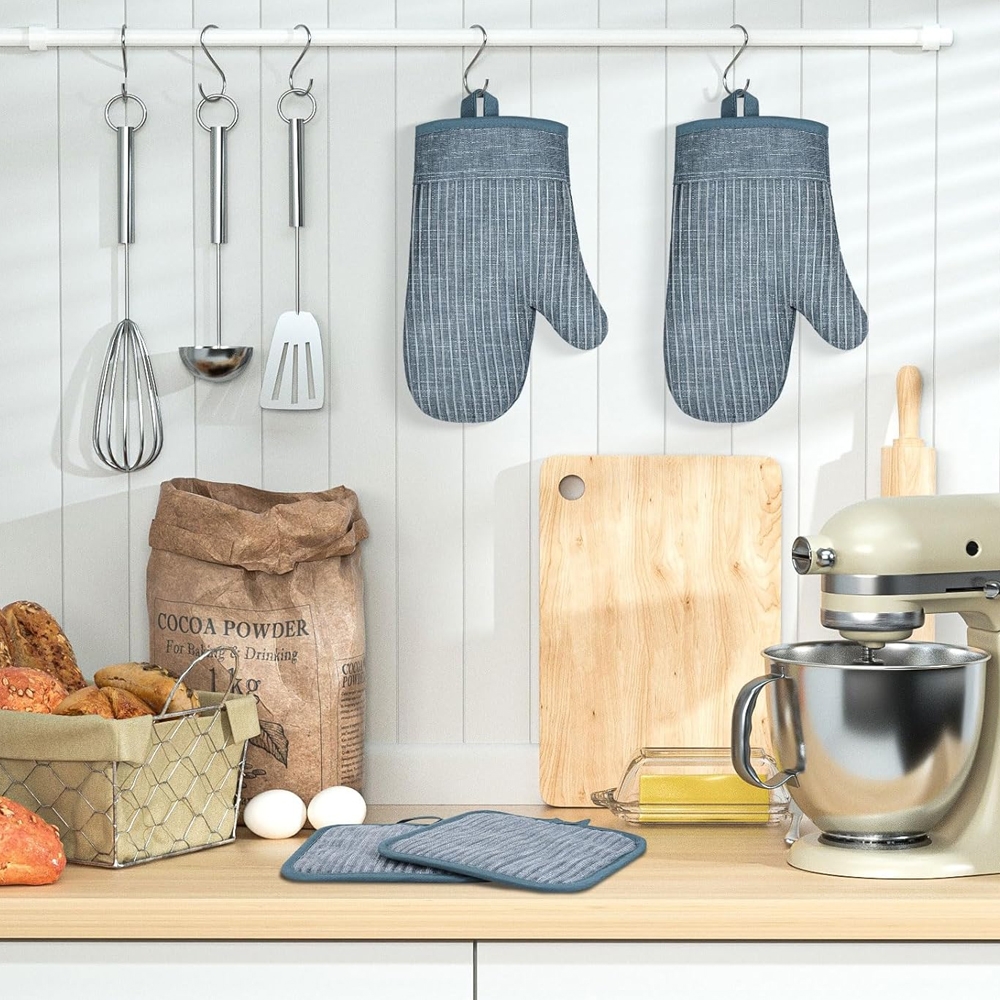 CUSIRA Oven Mitts and Pot Holders, Silicone Oven Gloves, 500 F Heat Resistant Oven Mitts Sets, Non-Slip Silicone Textured Grip, Blue